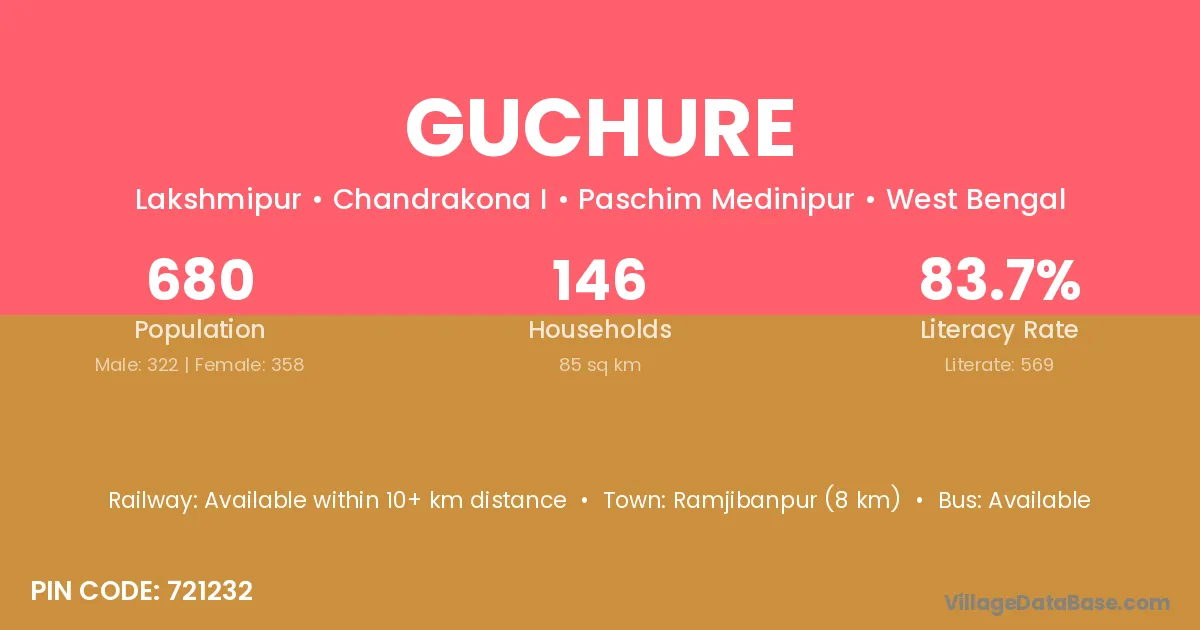 Ramjibanpur (8 km) is the nearest town to Guchure village for major economic activities and is located approximately 8 km away.
