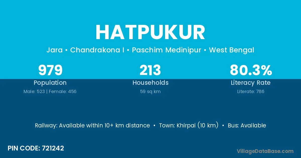 Hatpukur village is located in the Chandrakona I Subdivision of the Paschim Medinipur district in West Bengal.