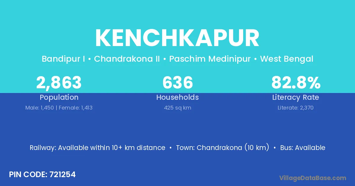 Chandrakona (10 km) is the nearest town to Kenchkapur village for major economic activities and is located approximately 10 km away.