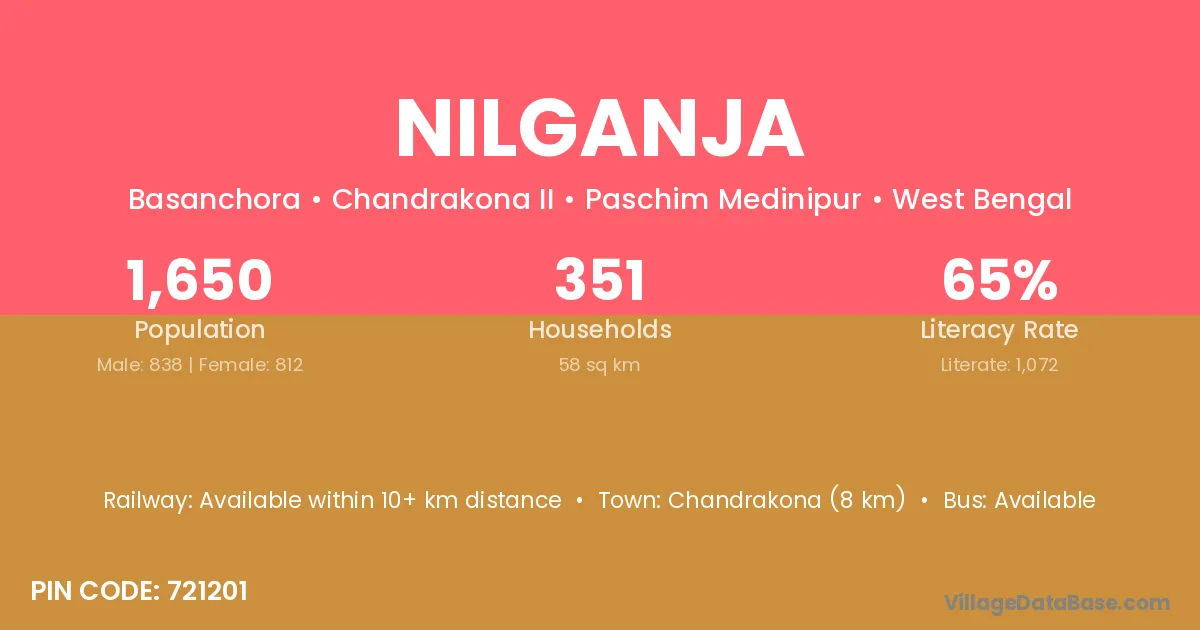 Chandrakona (8 km) is the nearest town to Nilganja village for major economic activities and is located approximately 8 km away.