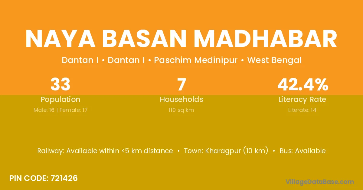 Kharagpur (10 km) is the nearest town to Naya Basan Madhabar village for major economic activities and is located approximately 10 km away.