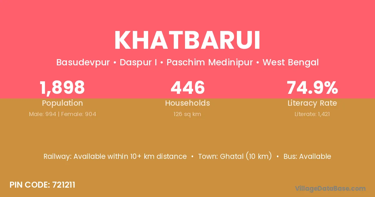 Khatbarui village is located in the Daspur I Subdivision of the Paschim Medinipur district in West Bengal.