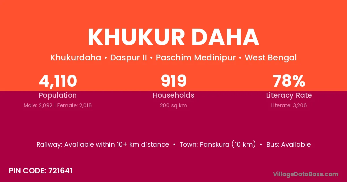 Panskura (10 km) is the nearest town to Khukur Daha village for major economic activities and is located approximately 10 km away.
