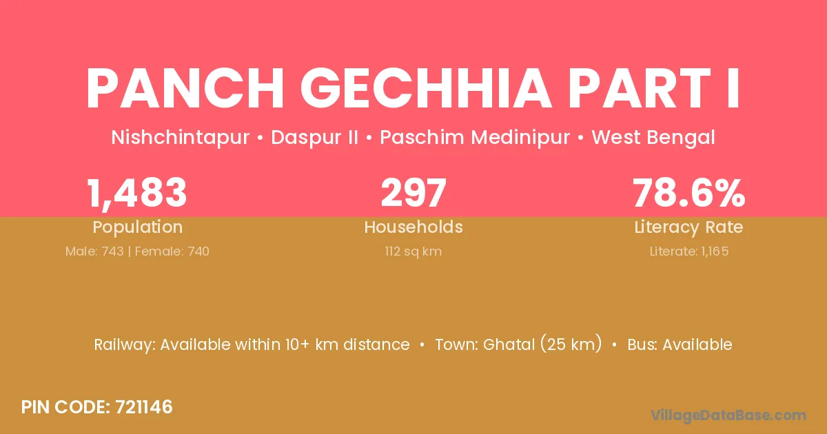 Ghatal (25 km) is the nearest town to Panch Gechhia Part I village for major economic activities and is located approximately 25 km away.