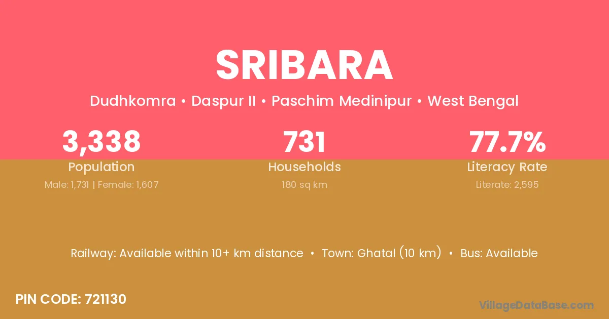 Ghatal (10 km) is the nearest town to Sribara village for major economic activities and is located approximately 10 km away.