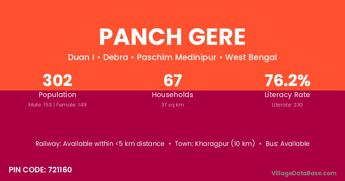 Panch Gere village has a total population of 302 people, of which 153 are males and 149 are females.