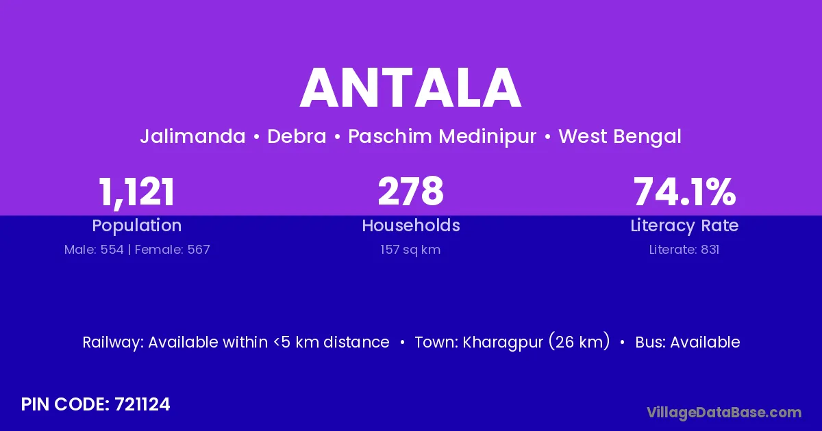 Antala village is located in the Debra Subdivision of the Paschim Medinipur district in West Bengal.