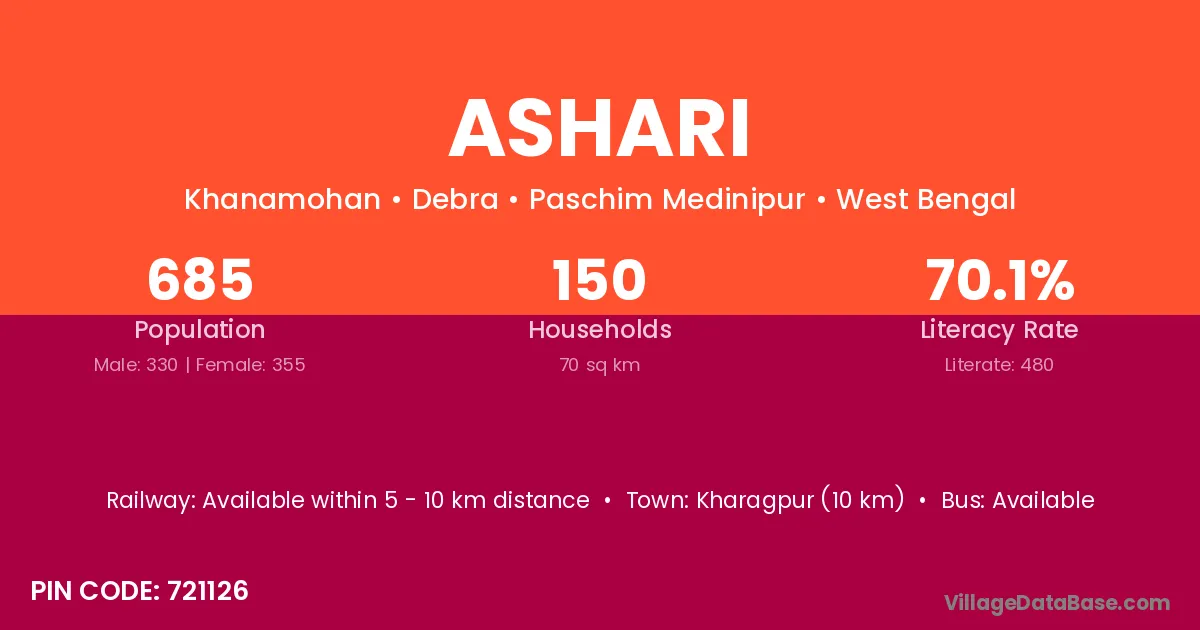 According to Census 2011 information, the village code of Ashari village is 721126.