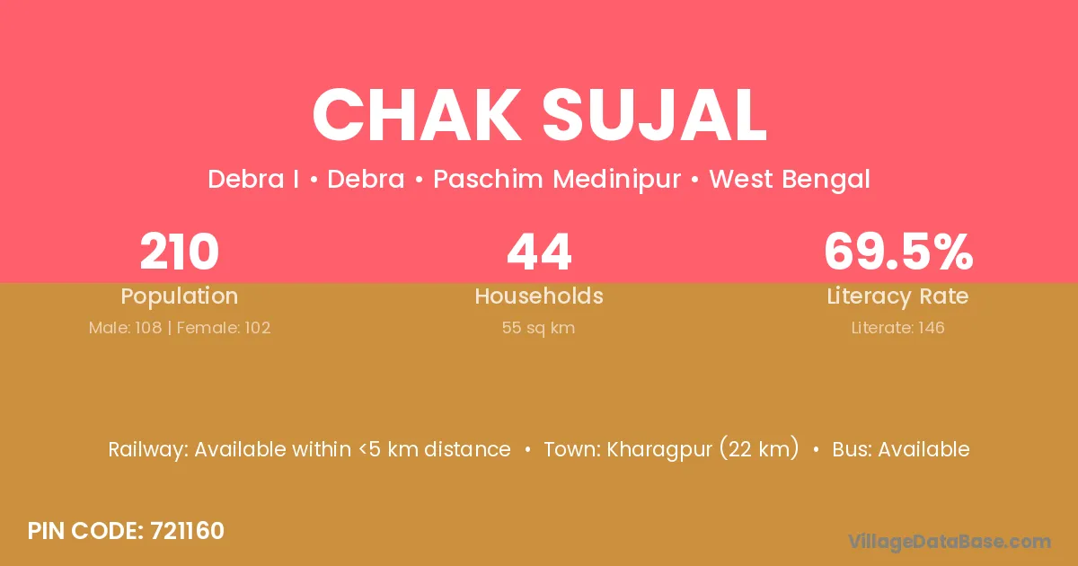 Chak Sujal village is located in the Debra Subdivision of the Paschim Medinipur district in West Bengal.