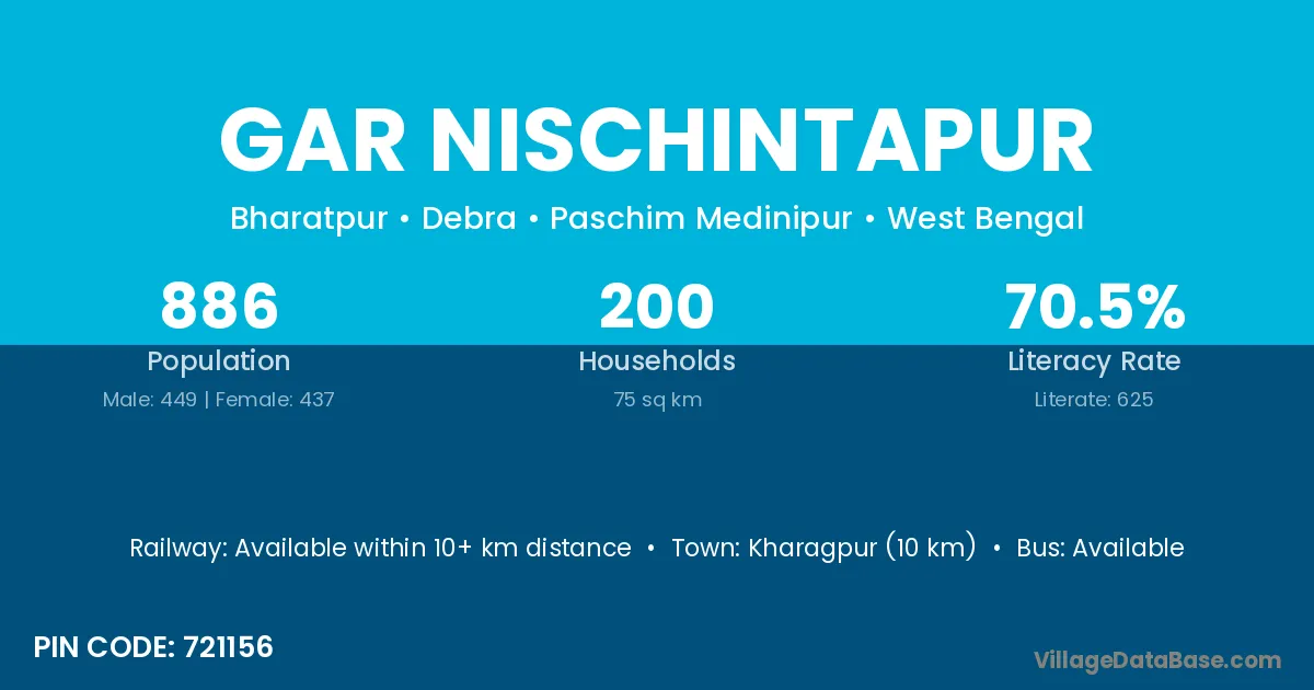 Kharagpur (10 km) is the nearest town to Gar Nischintapur village for major economic activities and is located approximately 10 km away.