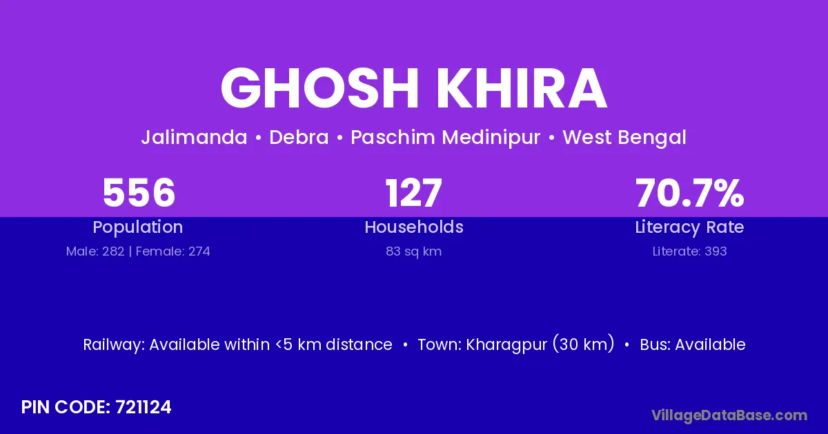 According to Census 2011 information, the village code of Ghosh Khira village is 721124.