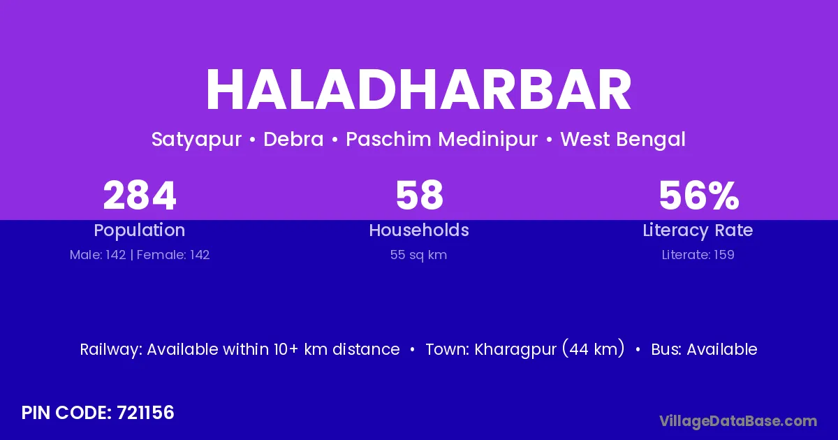 Kharagpur (44 km) is the nearest town to Haladharbar village for major economic activities and is located approximately 44 km away.