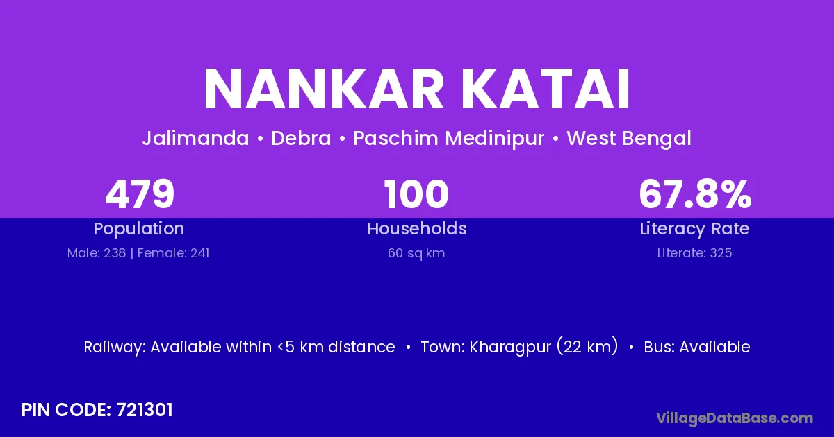 Kharagpur (22 km) is the nearest town to Nankar Katai village for major economic activities and is located approximately 22 km away.