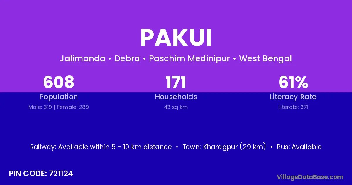Pakui village is located in the Debra Subdivision of the Paschim Medinipur district in West Bengal.