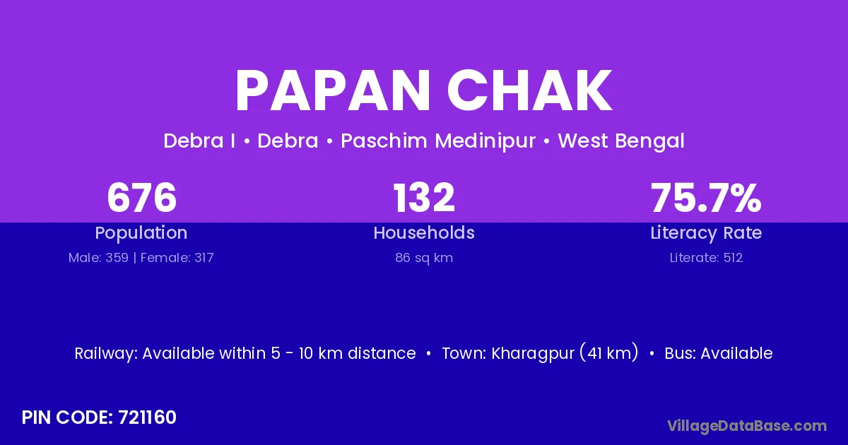 Kharagpur (41 km) is the nearest town to Papan Chak village for major economic activities and is located approximately 41 km away.