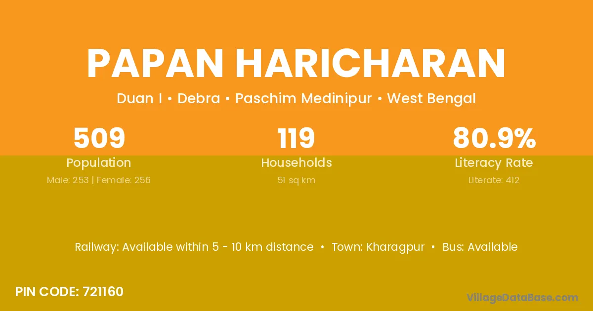 Papan Haricharan village is located in the Debra Subdivision of the Paschim Medinipur district in West Bengal.
