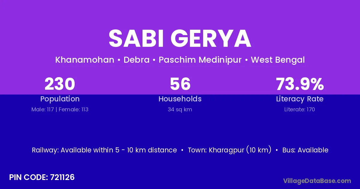 According to Census 2011 information, the village code of Sabi Gerya village is 721126.