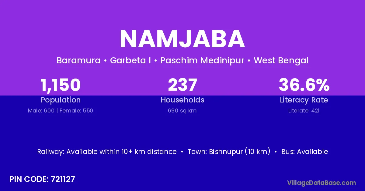 Namjaba village is located in the Garbeta I Subdivision of the Paschim Medinipur district in West Bengal .