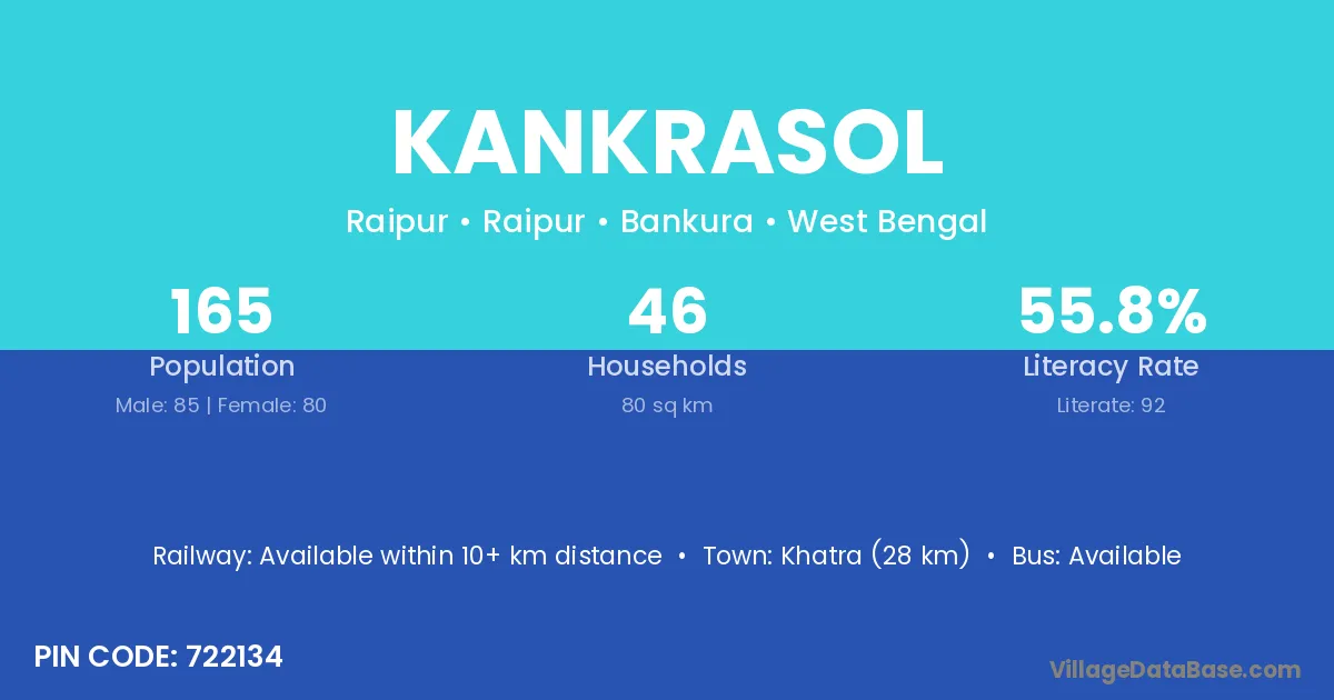 Bishnupur (10 km) is the nearest town to Kankrasol village for major economic activities and is located approximately 10 km away.