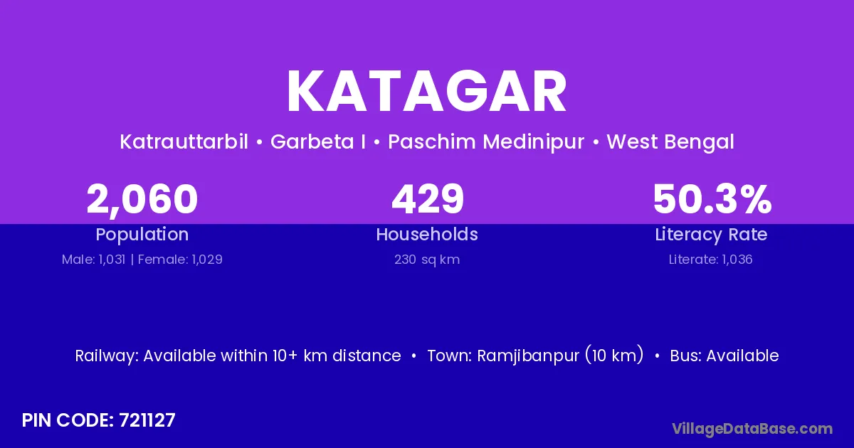 Ramjibanpur (10 km) is the nearest town to Katagar village for major economic activities and is located approximately 10 km away.