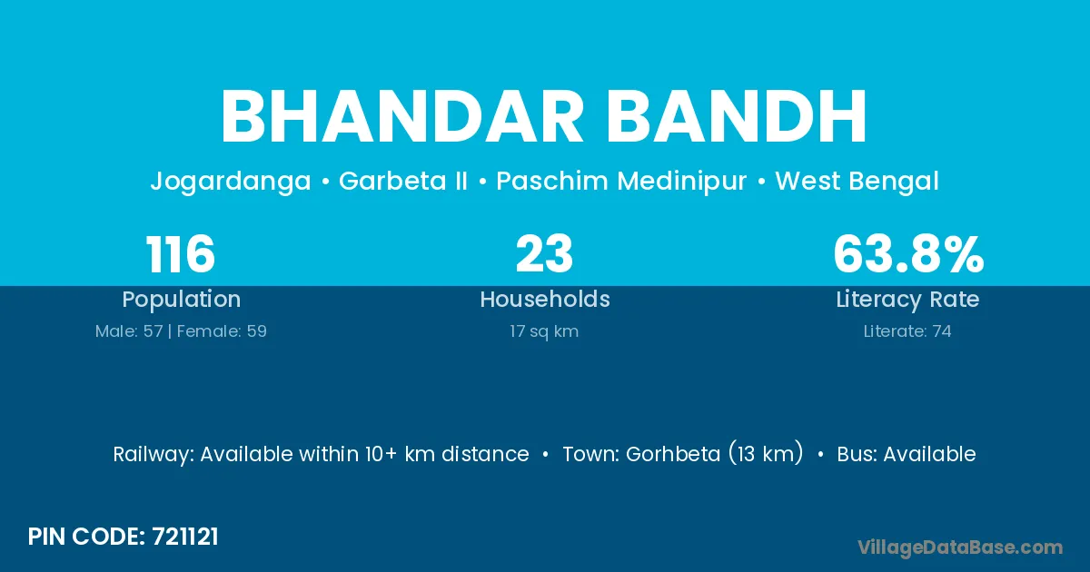 According to Census 2011 information, the village code of Bhandar Bandh village is 721121.