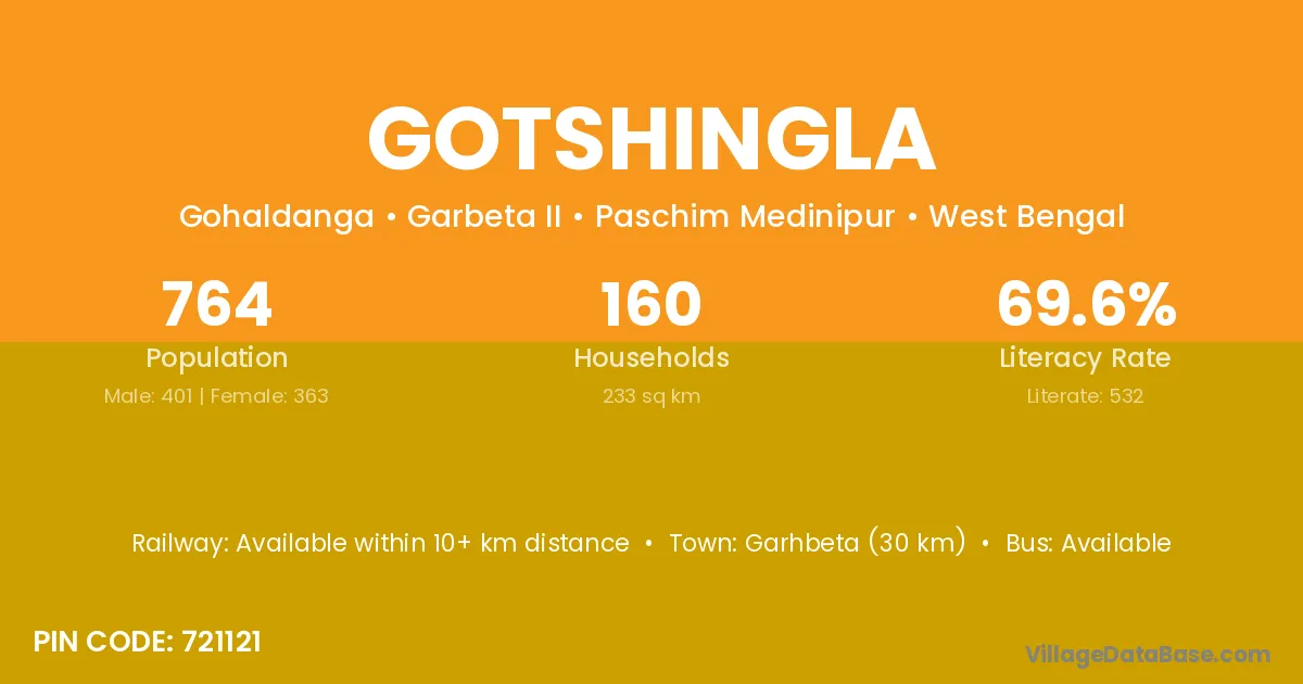 Gotshingla village is located in the Garbeta II Subdivision of the Paschim Medinipur district in West Bengal.