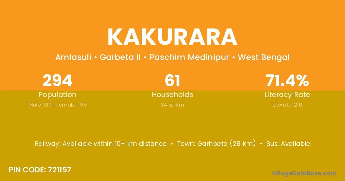 Garhbeta (28 km) is the nearest town to Kakurara village for major economic activities and is located approximately 28 km away.