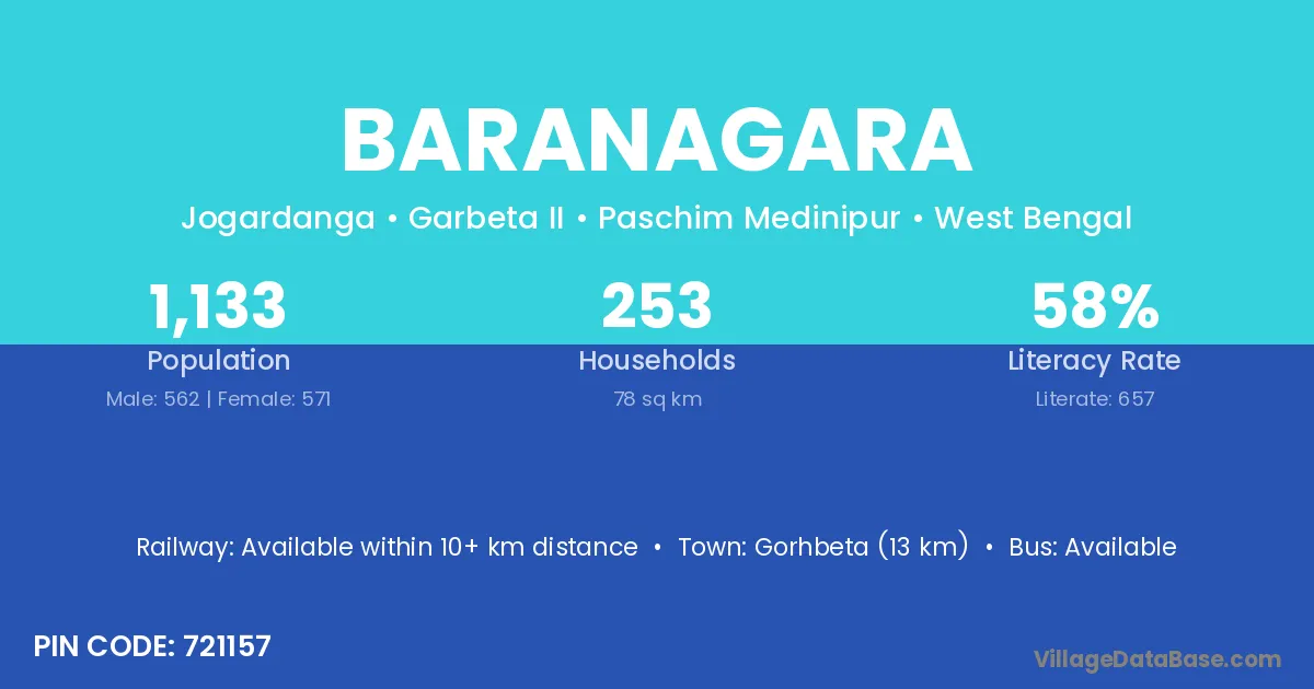 According to Census 2011 information, the village code of Baranagara village is 721157.