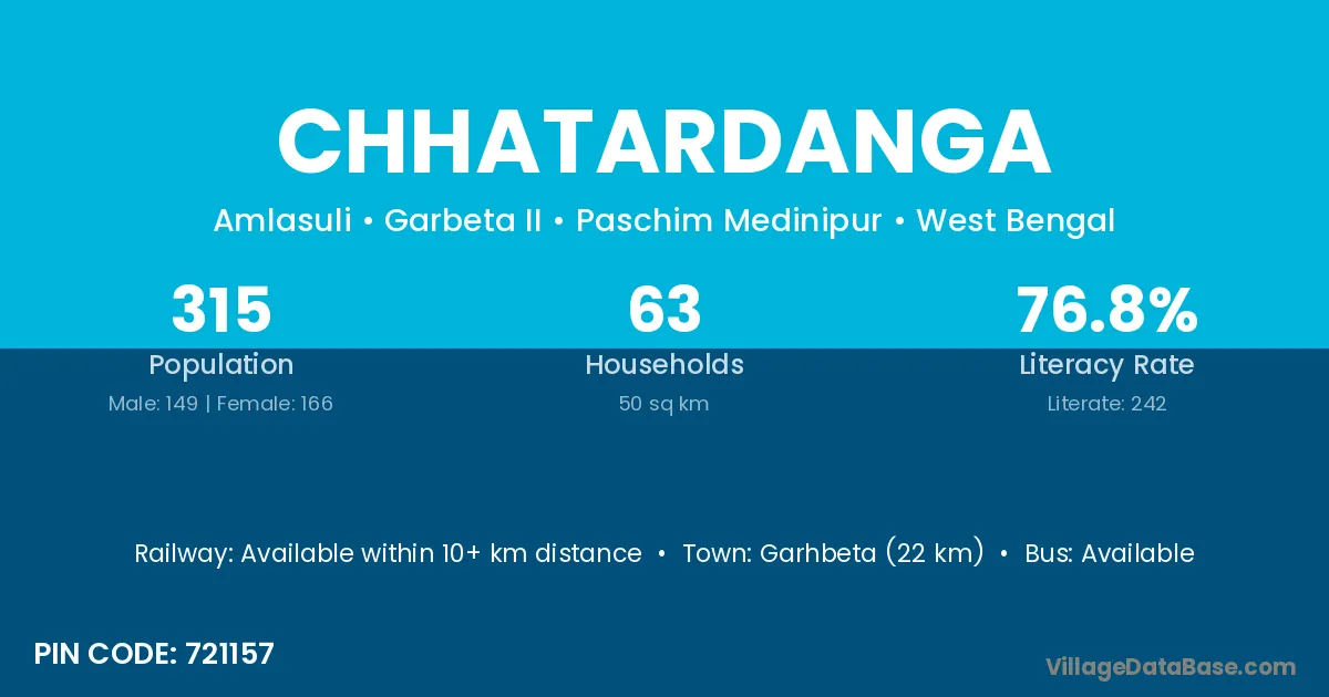 Garhbeta (22 km) is the nearest town to Chhatardanga village for major economic activities and is located approximately 22 km away.