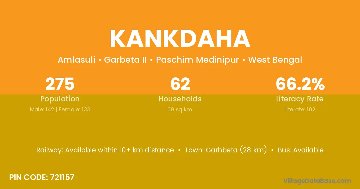 Garhbeta (28 km) is the nearest town to Kankdaha village for major economic activities and is located approximately 28 km away.
