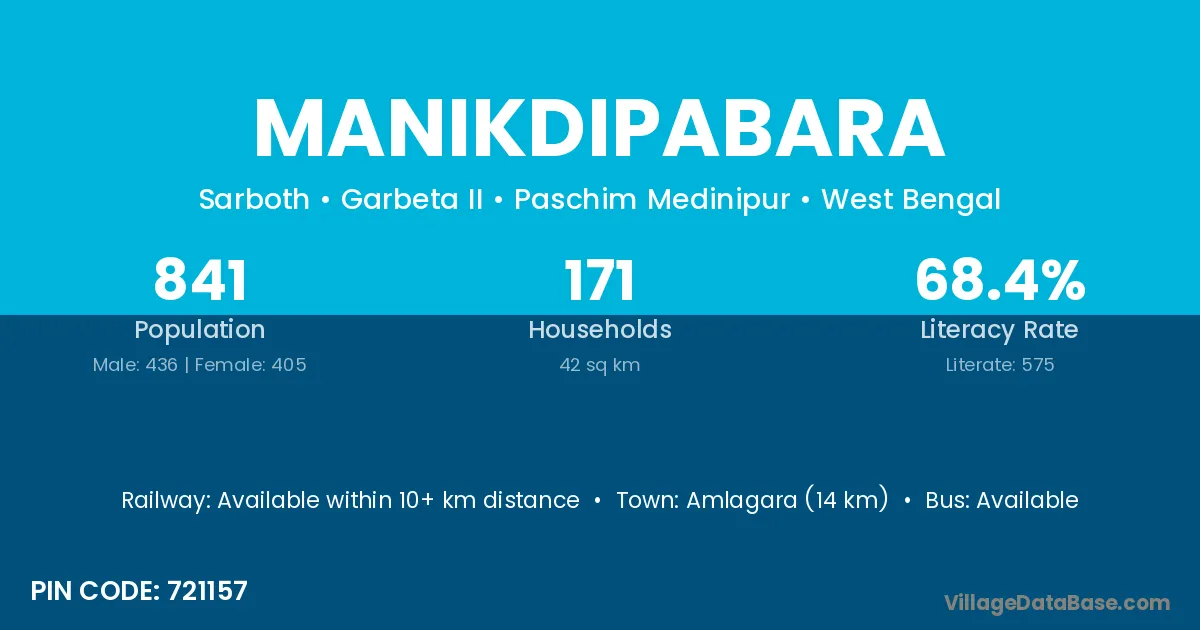 Manikdipabara village is located in the Garbeta II Subdivision of the Paschim Medinipur district in West Bengal.