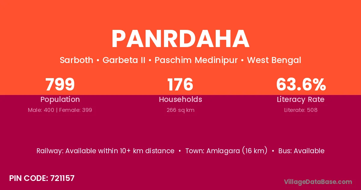 According to Census 2011 information, the village code of Panrdaha village is 721157.