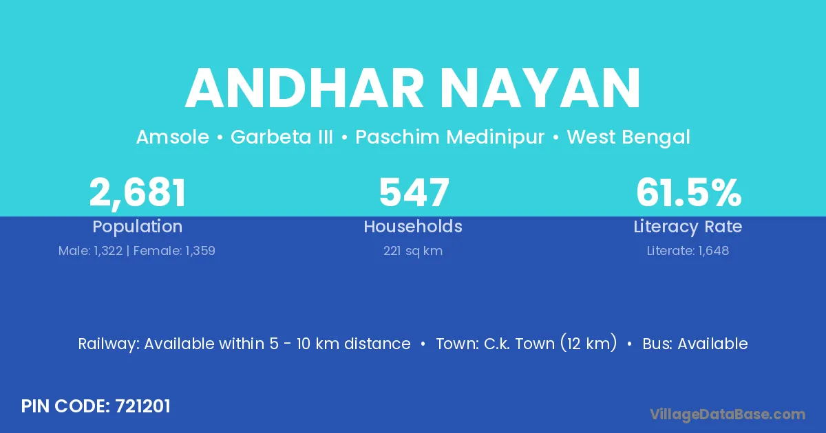 Andhar Nayan village is located in the Garbeta III Subdivision of the Paschim Medinipur district in West Bengal.