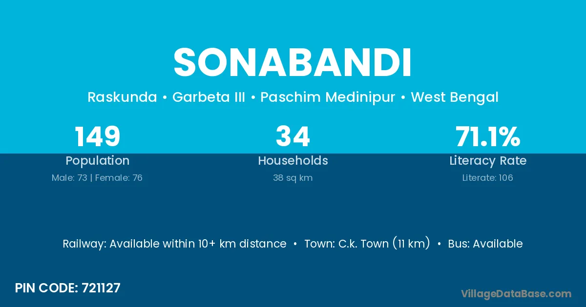 C.k. Town (11 km) is the nearest town to Sonabandi village for major economic activities and is located approximately 11 km away.