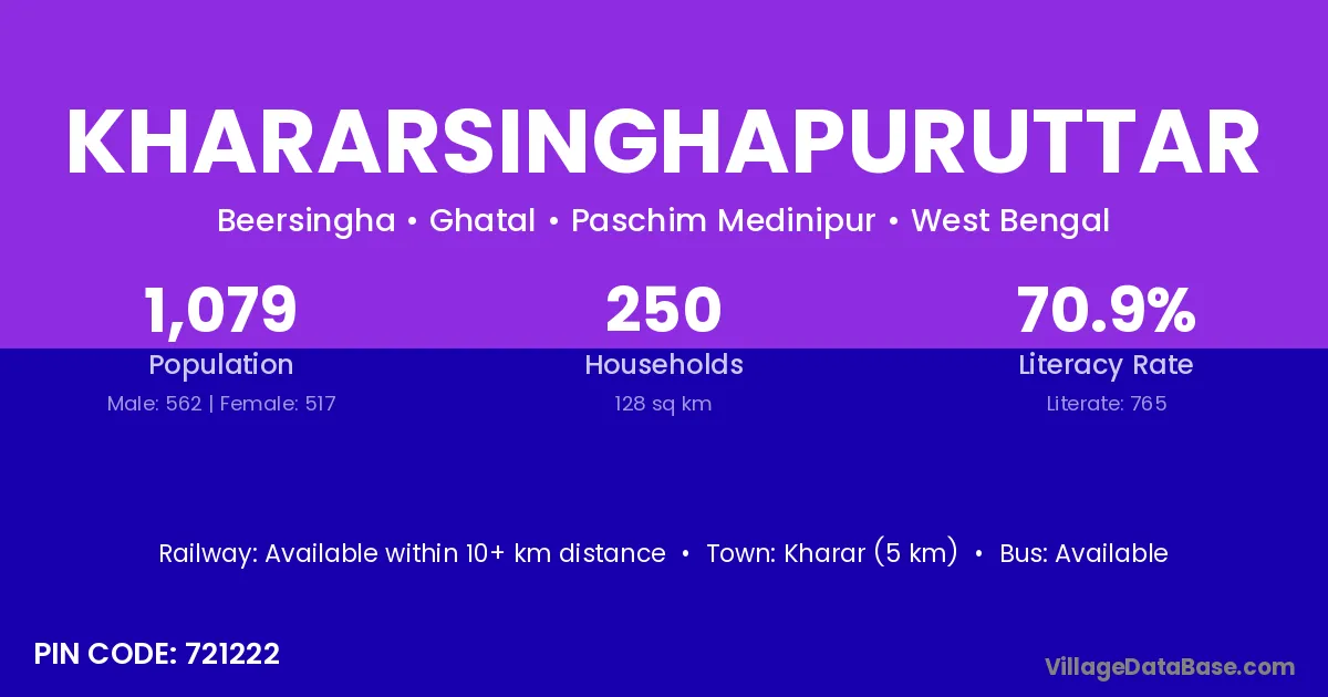 Khararsinghapuruttar village is located in the Ghatal Subdivision of the Paschim Medinipur district in West Bengal.