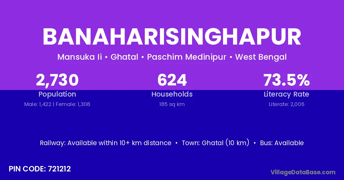 Ghatal (10 km) is the nearest town to Banaharisinghapur village for major economic activities and is located approximately 10 km away.