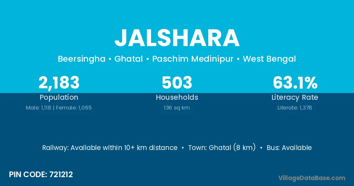 Ghatal (8 km) is the nearest town to Jalshara village for major economic activities and is located approximately 8 km away.