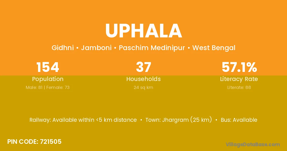 Jhargram (25 km) is the nearest town to Uphala village for major economic activities and is located approximately 25 km away.