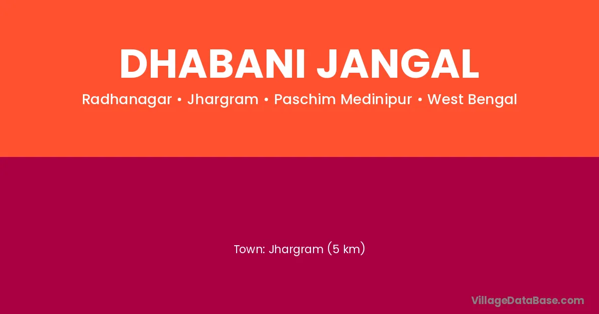 Jhargram (5 km) is the nearest town to Dhabani Jangal village for major economic activities and is located approximately 5 km away.