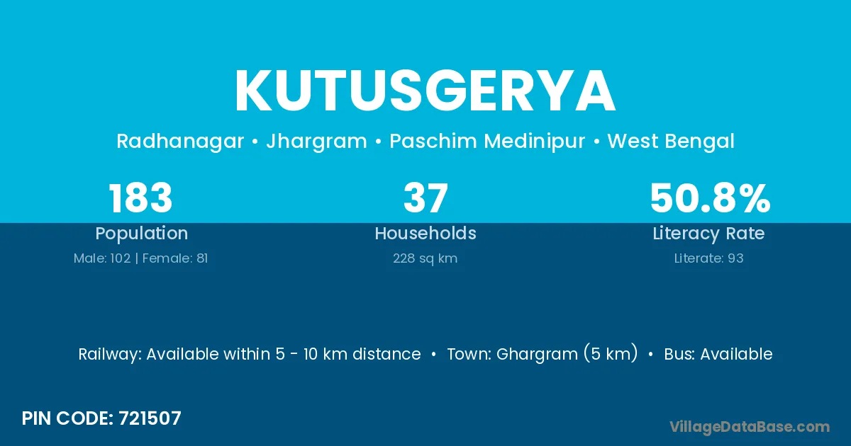 Ghargram (5 km) is the nearest town to Kutusgerya village for major economic activities and is located approximately 5 km away.