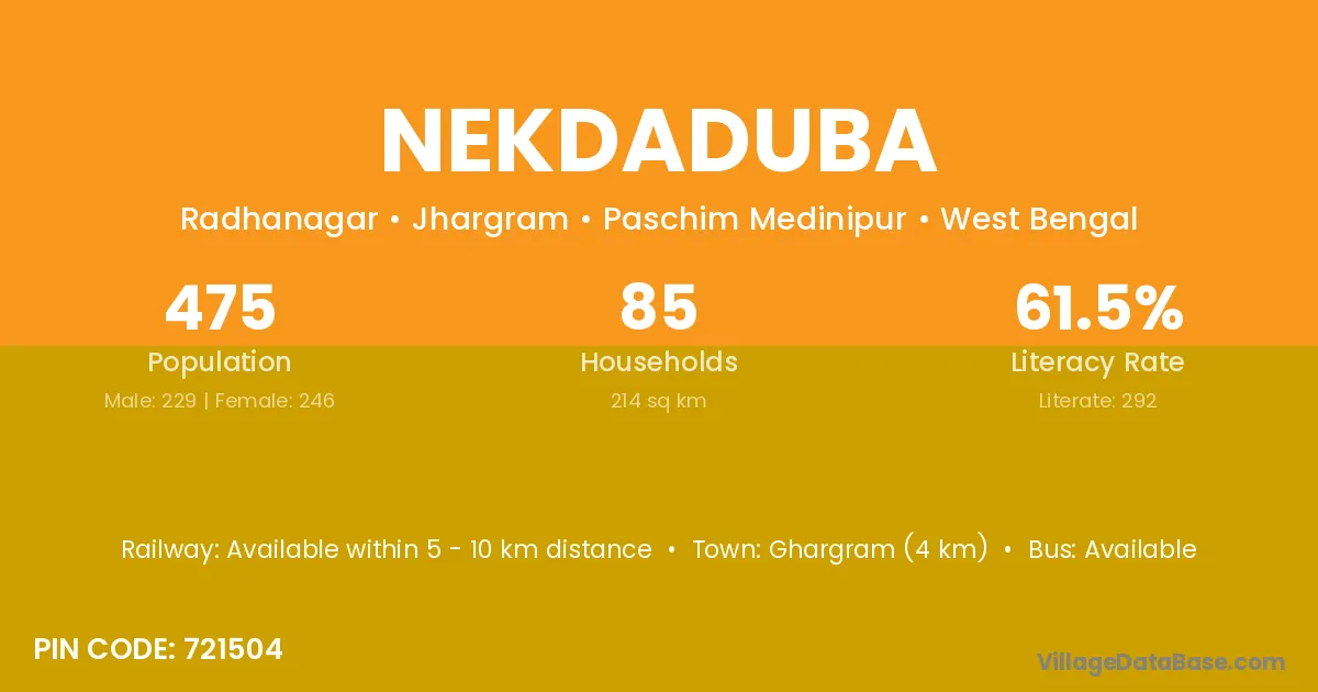 Ghargram (4 km) is the nearest town to Nekdaduba village for major economic activities and is located approximately 4 km away.