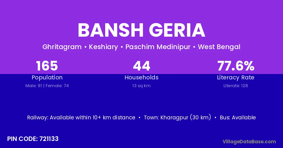 Bansh Geria village is located in the Keshiary Subdivision of the Paschim Medinipur district in West Bengal .
