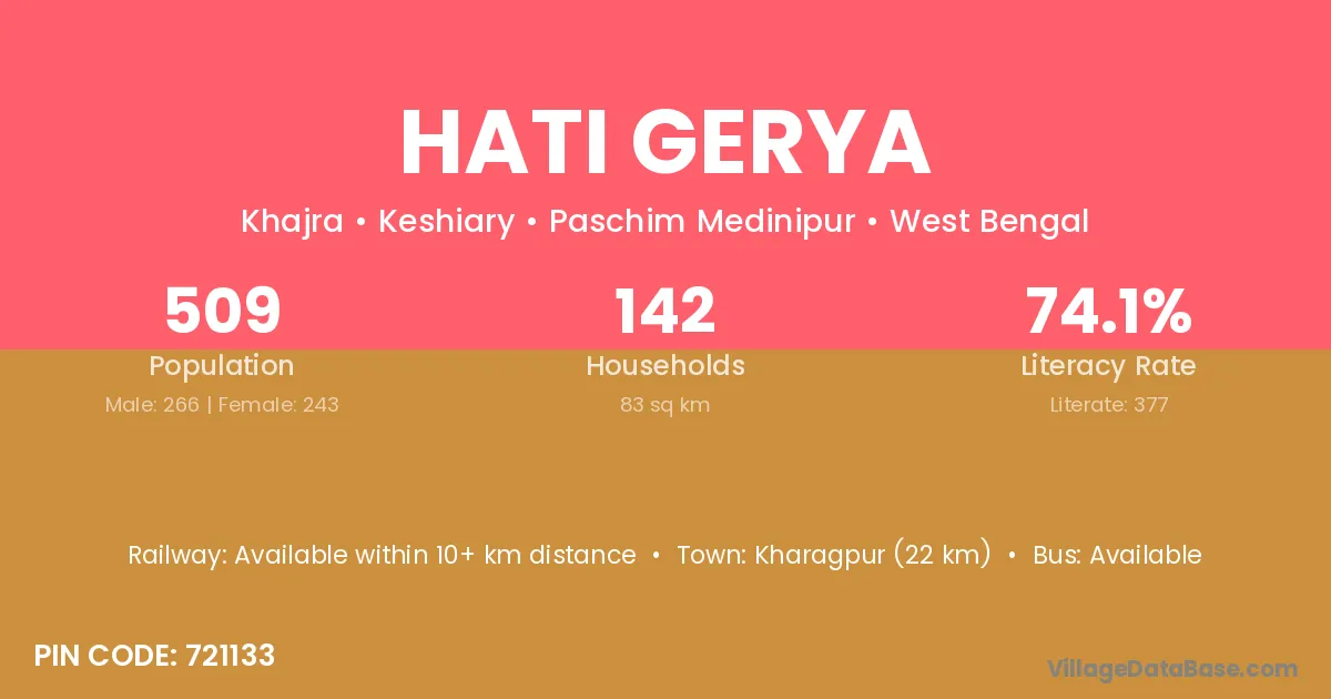 Hati Gerya village is located in the Keshiary Subdivision of the Paschim Medinipur district in West Bengal .