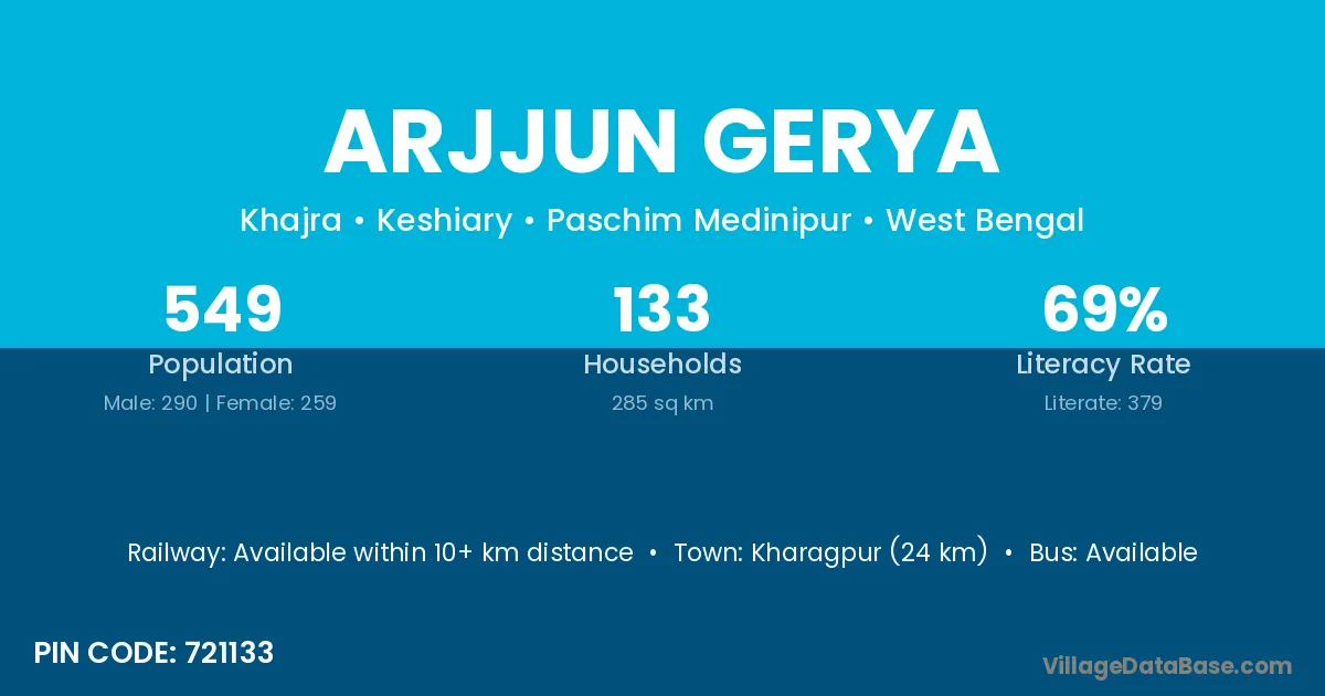 Arjjun Gerya village is located in the Keshiary Subdivision of the Paschim Medinipur district in West Bengal.