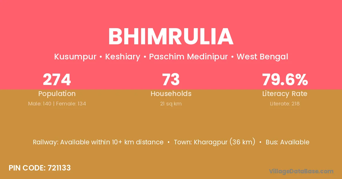 Bhimrulia village is located in the Keshiary Subdivision of the Paschim Medinipur district in West Bengal.