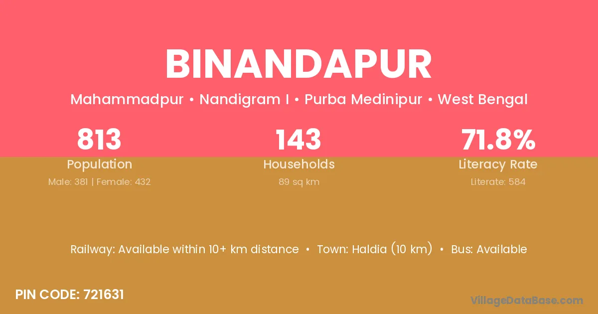 Kharagpur (32 km) is the nearest town to Binandapur village for major economic activities and is located approximately 32 km away.