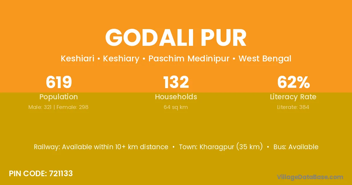 Kharagpur (35 km) is the nearest town to Godali Pur village for major economic activities and is located approximately 35 km away.
