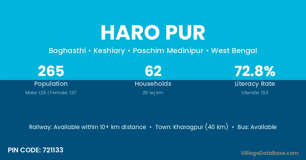 Kharagpur (40 km) is the nearest town to Haro Pur village for major economic activities and is located approximately 40 km away.