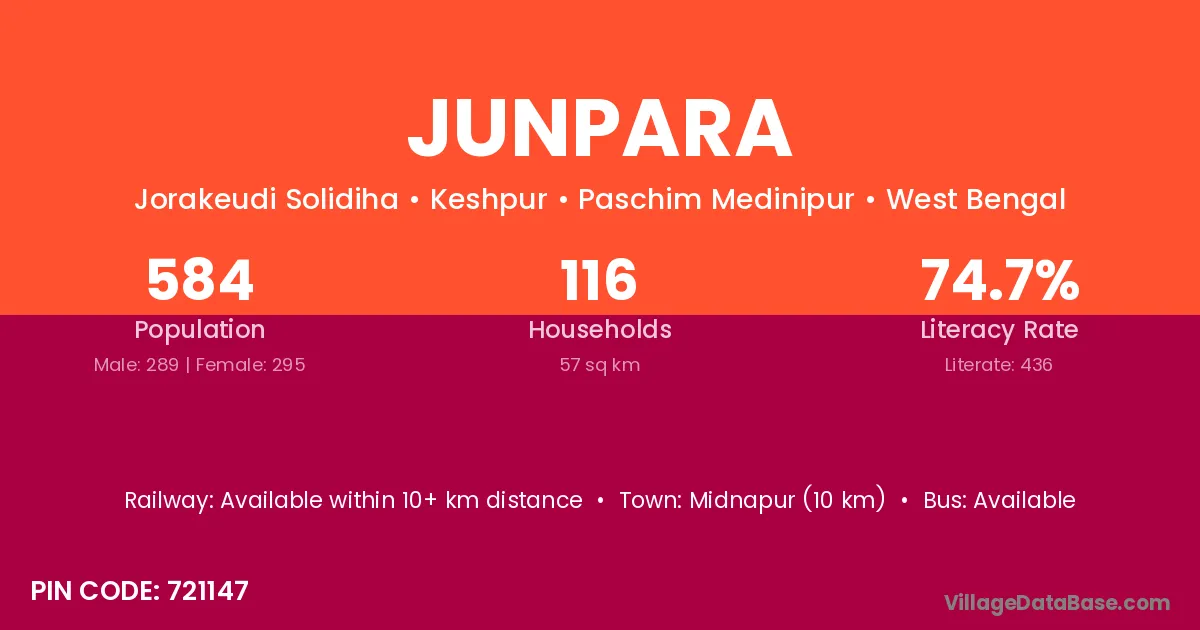 Midnapur (10 km) is the nearest town to Junpara village for major economic activities and is located approximately 10 km away.
