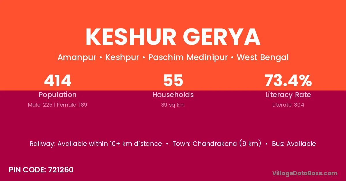 Keshur Gerya village is located in the Keshpur Subdivision of the Paschim Medinipur district in West Bengal.